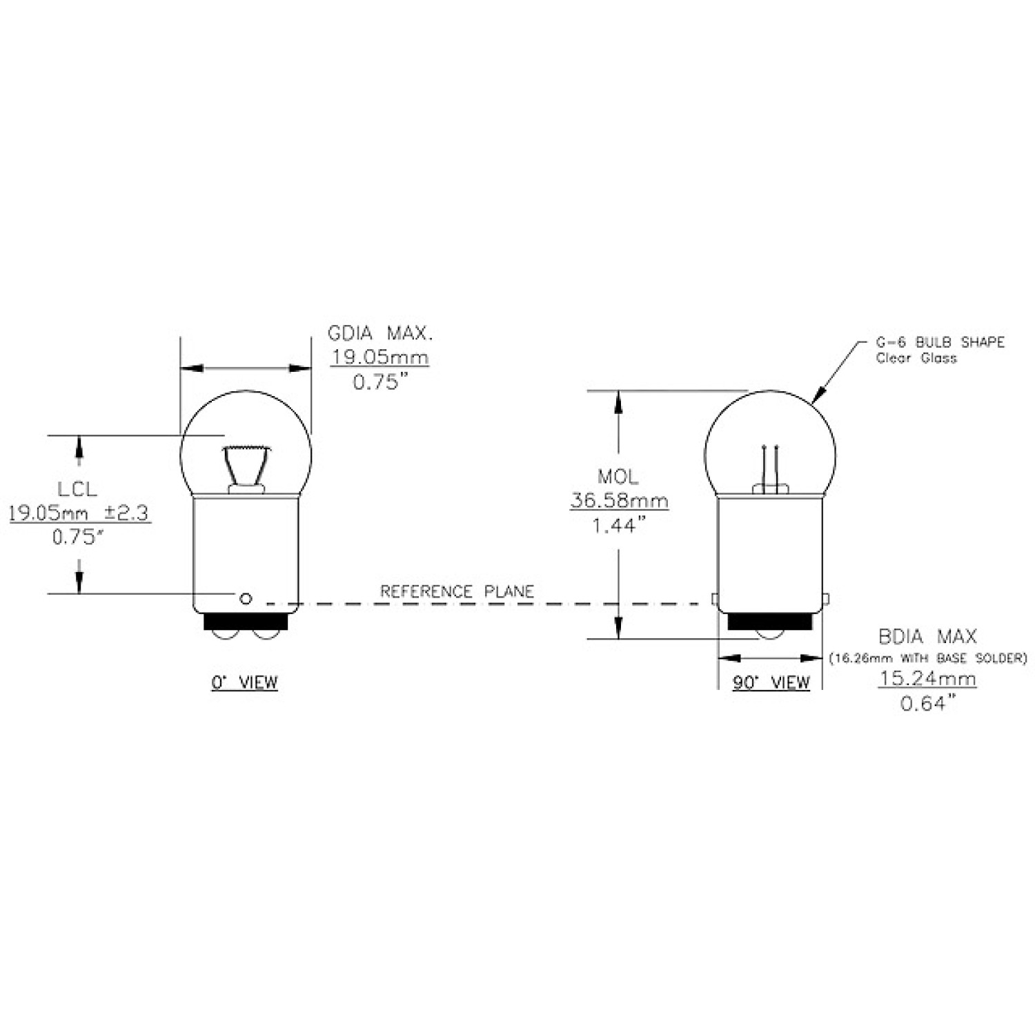 Voltage: 28V/28V (dual filament), Current: 0.23A/0.23A, Type: G6 Miniature Bulb, Light Output: 3.0 MSCP, Base Type: BA15D - Double Contact Bayonet, Life Hours: 2000, Dimensions: 1.44 in. Length x 0.75 in. Diameter