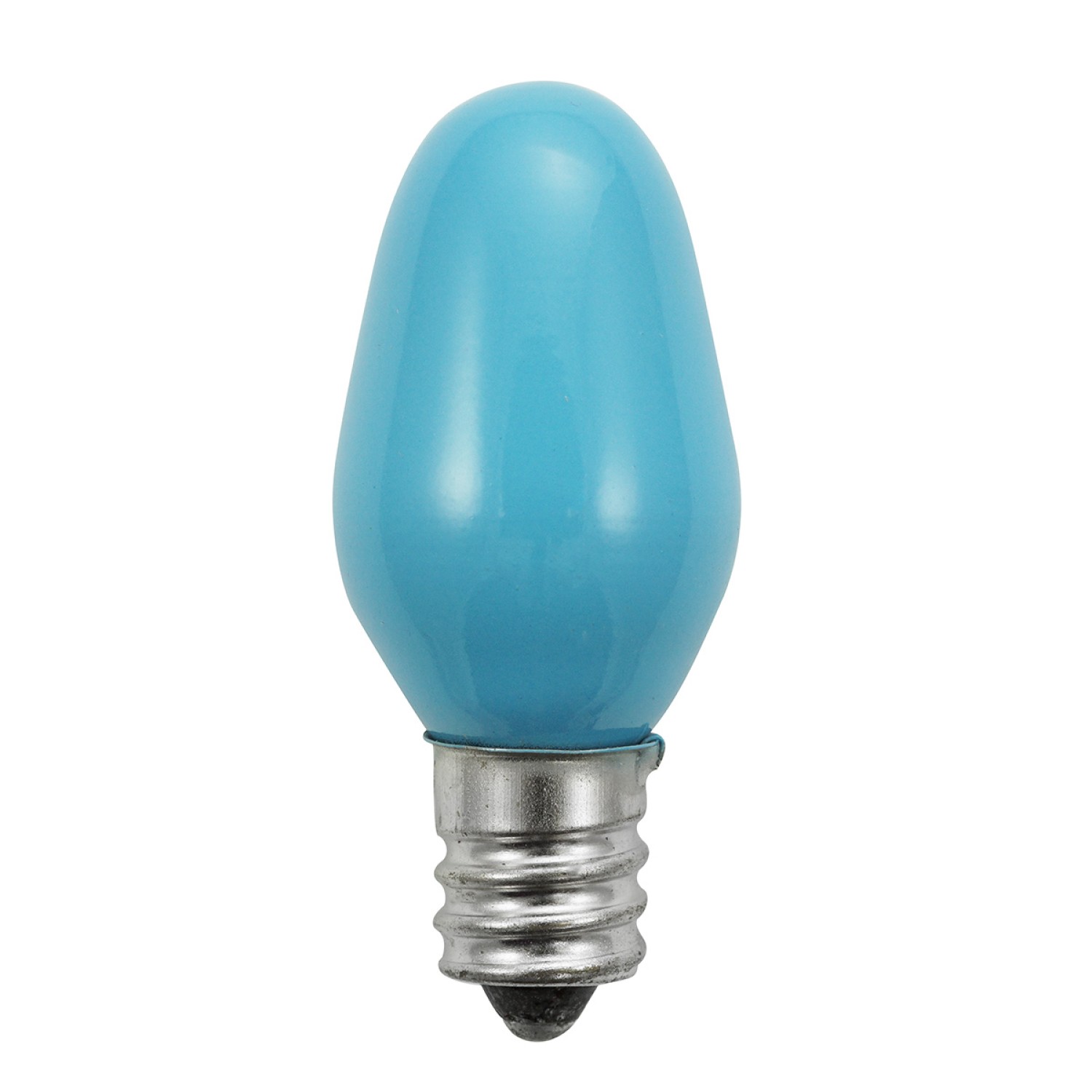 Voltage: 130V, Current: 0.054A, Wattage: 7W, Type: C7 Miniature Bulb, Base Type: E12 - Candelabra Screw Base, Life Hours: 4,000, Glass: Pastel Blue, Dimensions: 2.13 in. Length