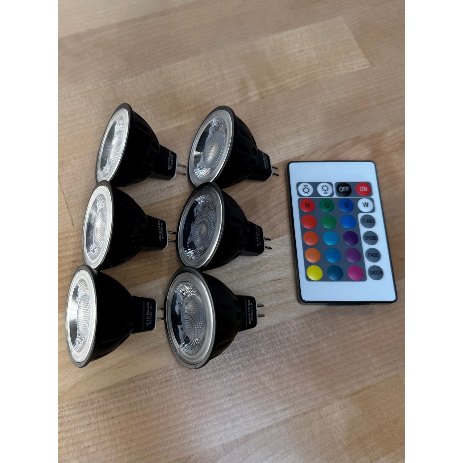 6 LED MR16RGB3K Bulbs and 1 Remote included