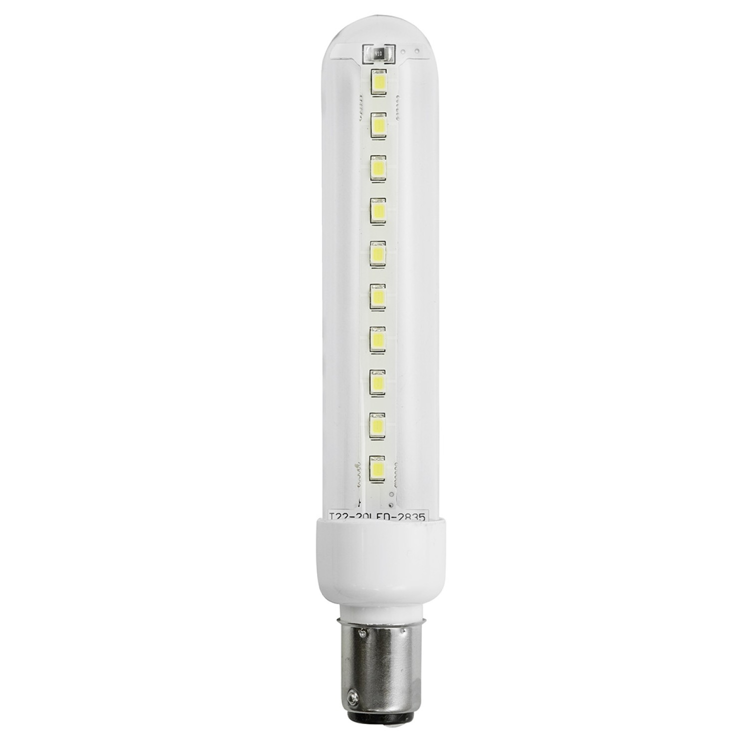 Voltage: 120V, Wattage: 2W, Current: 16mA, Beam Spread: 360 Degree, Length: 122mm, Diameter: 23mm, Base Type: BA15D (double contact bayonet), Average Life Hours: 100,000, Color Emitted: White, Exit Sign LED