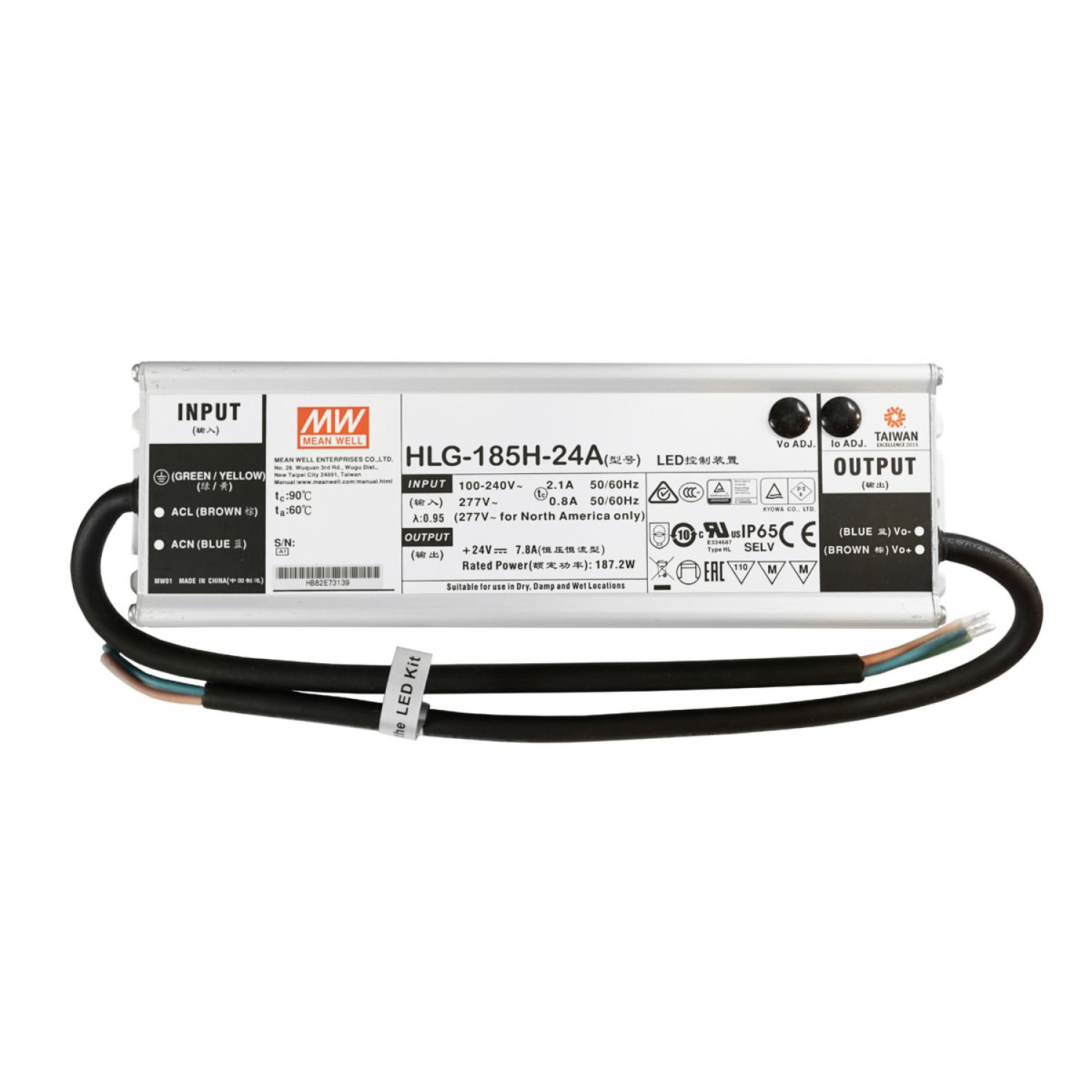 LED Retrofit Kit, Input Voltage: 100-277V AC, Wattage: 185W, Lumens: 23125, Driver Type: HLG-185H-24A, Replaces: 600-700W HPS, MH, HID Lamps